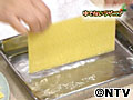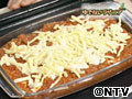 (2) ラザニアを水にくぐらせてから広げてのせる。(隙間は割ってのせるとよい)