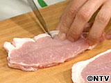 豚肉ににんにくの切り口をこすりつけてほのかに香りをつけるのが隠しワザです。