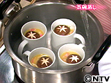 湯はカップの中に入っている卵液の少し下まで入れる。