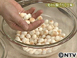 白くて丸い小型の焼き麩。良質の小麦粉たんぱく質が原料なので消化がよく、栄養価も高い。