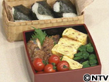 ・小さく切って焼いたごまみそ焼き ・ゆでたほうれん草を海苔巻きに ・桜えびとねぎの卵焼き ・プチトマト、青じそ ・おむすび。