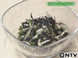 ■ 材料 生ひじき・・・150g 新たまねぎ・・・1個 青じそ・・・10枚 焙煎白ごまドレッシング・・・適量 ■ 作り方 (1)ひじきは熱湯でさっとゆでてザルにとり、水気をきって熱いうちにドレッシング少々をかけて粗熱をとります。 (2)新たまねぎはスライス、青じそはせん切りにして(1)に加え、ドレッシングをかけてあえます。