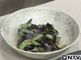 なすの皮はさっとゆでてアクを抜き、酢としょうゆ各大さじ1とごま油小さじ1/2であえます。