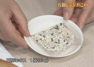 麦、粟、きび、ひえ、そば、黒米、玄米、大豆、黒豆、あずきなど、五穀や雑穀をブレンドしたもの。20~30gずつ小分けになっているものが多い。