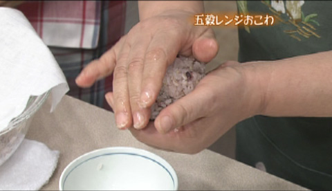 熱い場合は茶碗に適量をとり、手に塩をつけて、外側はしっかり中はふんわりするように握りましょう。
