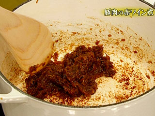 煮上がりはワインの酸味により異なります、酸味が強いときは砂糖小さじ1を加えるとよい。