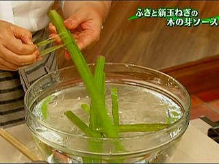 (3)熱湯で1~2分ゆで、すぐに水にとる。