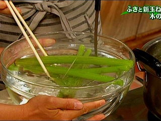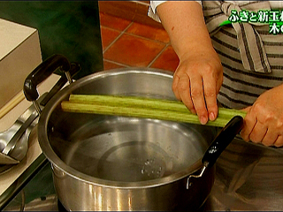 ふきは大きめの鍋でゆでましょう(短く切ってゆでると、筋をひくのが大変)。