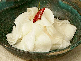 材料 かぶ・・・4個 甘酢(酢大さじ2、砂糖大さじ1、水大さじ1、塩少々、赤唐辛子1本、だし昆布少々) ・塩 作り方 (1)かぶは薄切りにして、塩小さじ1をまぶしてしんなりするまでおく。 (2)赤唐辛子は小口切りにし、昆布は細かく刻みボールに入れ、甘酢の調味料も加えてよく混ぜ、(1)の水気を絞って加え10分ほどおく。