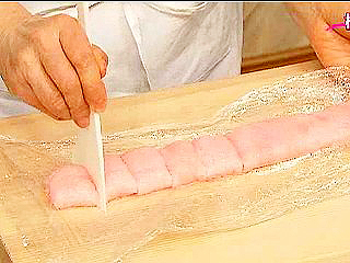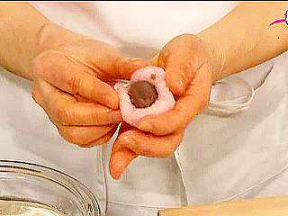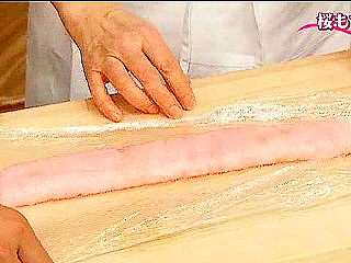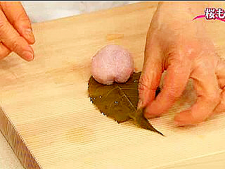 道明寺粉の生地が温かいうちにあんを包むこと。