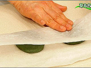 仕上げに草もちの底にきなこをまぶすと、皿につかず食べ易いです。