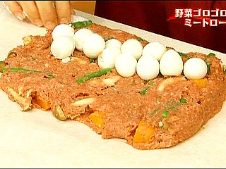 (2)うずら卵は肉だねにしっかり埋め込むようにして並べる。