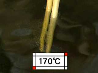 熱した揚げ油の中に菜箸を入れ、菜箸の先から細かい泡が出ていたら170℃の目安。