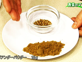 コリアンダーパウダーは香菜の種子の乾燥品を粉末にしたもの。
