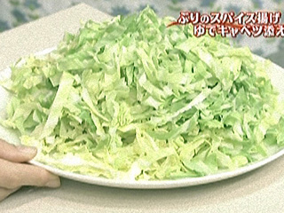 ぶりのスパイス揚げ ゆでキャベツ添え