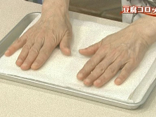豆腐は重石をせず、ペーパーに包んでそのままおく。