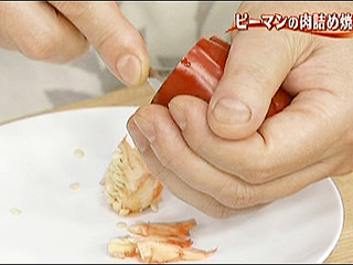 (3)肉だねを詰める(空気を抜くようにして入れる)。