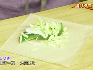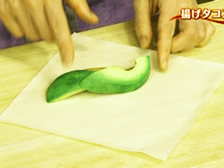 タコスのトルティーヤの代わりに春巻きの皮を使います。