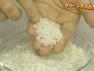 「インディカ米」「バスマティライス」などと呼ばれる長粒種の米で、短粒種の日本の米に比べ、アミロースの量が高く、粘り気が少ない。浸水はさせずにパラパラに炊き上げる。