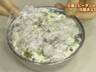 炒めた薬味が熱いうちに豆腐に混ぜて味をなじませること。