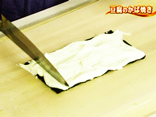豆腐の水きりがポイントです、重石はしっかり4kg、しっかり時間をおいて水きりをしておかないと、焼くときにやわらかくて扱いにくくなります。