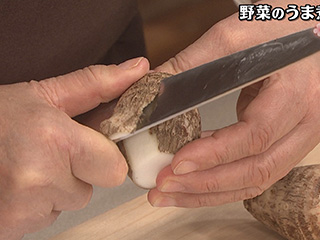 (3)切った角の向かい側を同じ幅になるようにむく。