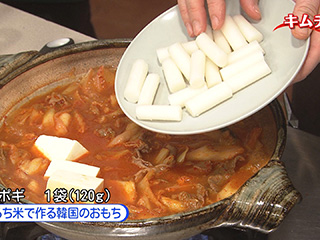 うるち米で作る韓国のおもち「トック」の一つ。コチュジャンで甘辛く炒め煮にする料理「トッポギ」に使うことから、細い棒状のトックを日本ではトッポギと呼ぶ。