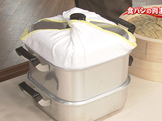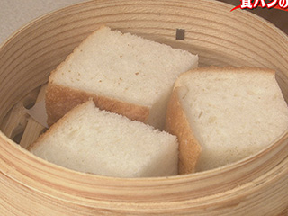 パンだけ蒸してもおいしい!肉まん同様食パンを4つ切りにし(切り込みは入れない)5分蒸す