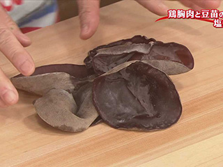 「くらげ」の歯ざわりに似ていることから日本名がある食用きのこ。プリプリ、コリコリした食感は乾燥品では及ばない生ならではの味わい。炒めものはもちろん、さっと湯通ししてあえものやサラダにも向く。ビタミンD、鉄分、カルシウムなどを豊富に含む。