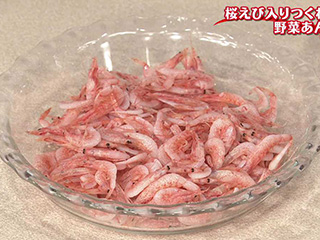 体長5cmほどの薄紅色のえびで、静岡県駿河湾の特産品。春と秋にそれぞれ2か月ほど漁が行われる。水揚げ後すぐに塩ゆでしたものが釜揚げで、やわらかい食感と甘みが特徴。