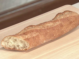 フランスで生まれた、小麦粉と塩、水、イーストのみで作られるいわゆるフランスパンの一種で、細長い形とクープと呼ばれる切り目が特徴。やや太いタイプはバタールと呼ばれる。外側がパリッと香ばしく、内側はふんわりした食感だが、時間をおくと固くなる。