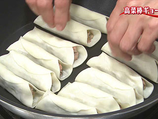 ギョーザ同士がくっつかないように、すき間をあけるように置いていくこと。