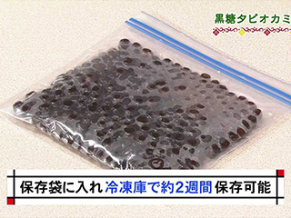 タピオカはゆでてから時間がたつと独特の食感がなくなるので、できたてを食べるのがおすすめ。もし残った場合は冷凍保存する。作り方(3)でやわらかくゆでたタピオカの水気をきり、ジッパーつき保存袋などに入れて冷凍庫へ。2週間ほど保存できる。食べるときは、黒糖シロップを煮立てて火を止め、タピオカを凍ったまま入れて解凍。モチモチになったらすぐに食べる。