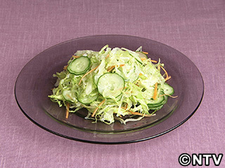 材料4人分 レタス…1/2個(150g) にんじん…1/3本(50g) きゅうり…1本(100g) ▼たれ 酢…大さじ1 塩…小さじ1/2 粗びき黒こしょう…少々 サラダ油…大さじ1+1/2 作り方 (1)レタスとにんじんは4~5cm長さのせん切りに、きゅうりは小口切りにする。すべて冷水に5分つけてパリッとさせ、ザルに上げて水気をしっかりきる。 (2)ボウルにたれの材料を順に入れて混ぜ合わせる。 (3)たれで(1)をあえる。