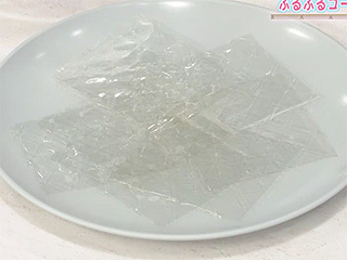 ゼラチンは冷たい水につけてふやかします(夏は水道水はNG)。