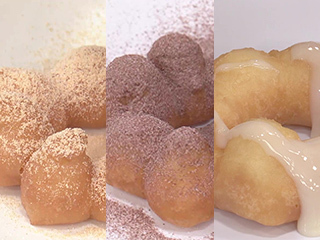 <きな粉> きな粉と粉砂糖を同量ずつ合わせ、茶こしなどでふる。 <ココア> ココアパウダー(無糖)と粉砂糖を同量ずつ合わせ、茶こしなどでふる。 <ハニーグレーズ> 粉砂糖大さじ5、牛乳大さじ1/2、はちみつ小さじ1を混ぜ合わせてかける。
