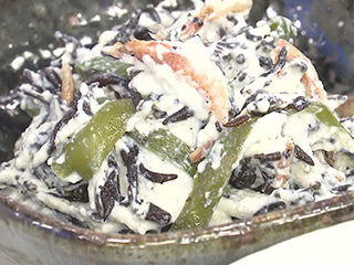 材料・作り方(2人分) 1 絹ごし豆腐(大)1/2丁(200g)はザルで裏ごしをする。同じザルに厚手のペーパータオルを敷いて豆腐を入れ、ボウルにのせ、冷蔵庫で30分水きりしながら冷やす。 2 (1)の豆腐をボウルに入れ、塩小さじ1/4、砂糖大さじ1/2、練り白ごま大さじ1を加えて混ぜる。ひじき、ピーマン、桜えびの炒り煮100gを加えてあえる。
