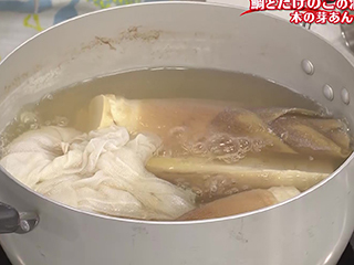鯛をふっくらと蒸し上げるので、たけのこもやわらかい穂先の部分を使いましょう