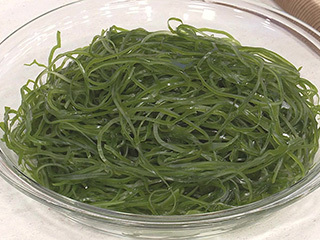 細く切った昆布を乾燥させたもので、今回はもどして売られているものを使用。サラダやあえもの、炒め煮などに使い勝手がよい。乾燥したものは水でもどして用いる。