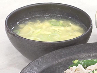 材料 (2人分) 長ねぎ(青い部分) 5㎝ 卵 1個 さやいんげんと豚肉のゆで汁 全量 (上記参照) 作り方 1:長ねぎは薄い小口切りにする。卵は溶きほぐす。 2:ゆで汁に水1/2カップを足して火にかける。煮立ったらアクを除き、溶き卵を細くまわし入れ、長ねぎを加えて火を止める。 いんげんの香り、豚肉のうまみが出たゆで汁は具材を加えてスープに活用します。塩味がついているので味つけも不要です。