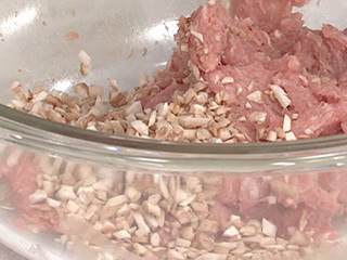 椎茸の軸もみじん切りにして肉だねに加え、無駄なく活用しましょう。ボリュームもうまみもアップします!