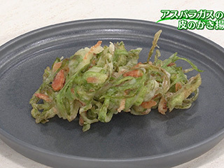 アスパラガスの切り落とした根元や皮は、桜えびと合わせてかき揚げにすると、立派なおかずになります