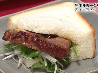 厚切りの食パンをセイロで蒸してふわふわに! 材料・作り方(4個分) 食パン(4枚切り)は4等分に切り、厚みの半分に切り込みを入れる。オーブンペーパーを敷いたセイロに並べる。蒸気の上がった鍋にセイロをのせ、ふたをして強火で2~3分蒸す。食パン1切れにチャーシュー1切れ、白髪ねぎ、パクチー各適量をはさみ、チャーシューに甜麺醤少々をぬる。