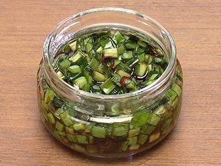 材料・作り方(作りやすい分量) にら1/2わ(50g)は1㎝幅に刻み、しょうゆ大さじ2、砂糖小さじ2、赤唐辛子の小口切り少々、ごま油大さじ1を加えて混ぜる。保存容器に入れ、冷蔵で1週間保存可能。 残りのにらは、にらだれにするのがおすすめ。納豆や卵かけごはん、うどんにかけてもおいしい。