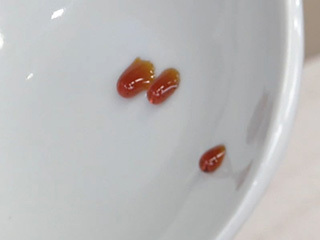 白い皿などに1滴を落とす。粘りがあり、ゆっくりと流れてしずく状になればよい。カチカチなら水を少し加えて火にかけて溶かしてゆるめ、ゆるめなら火にかけて煮つめる。