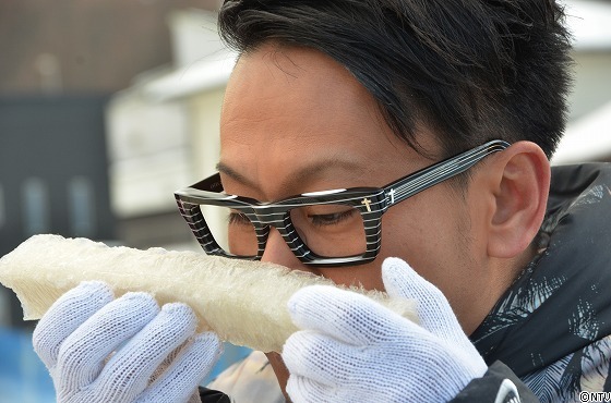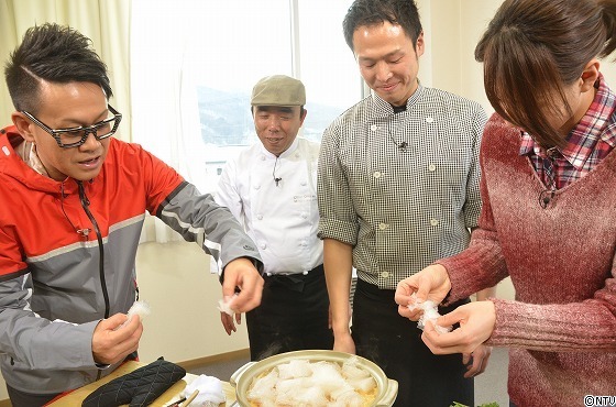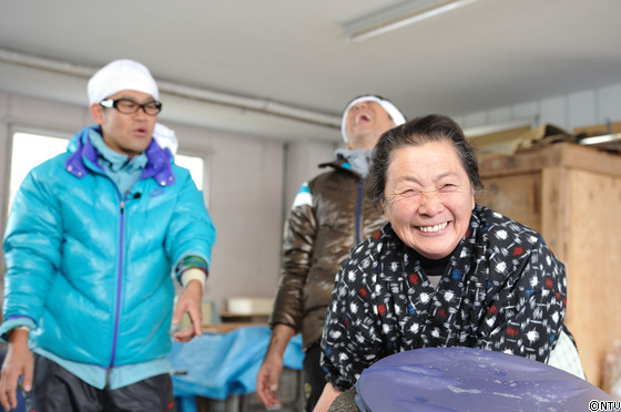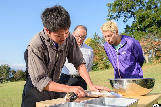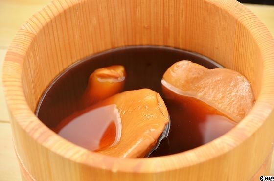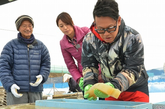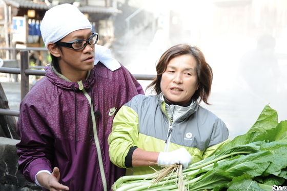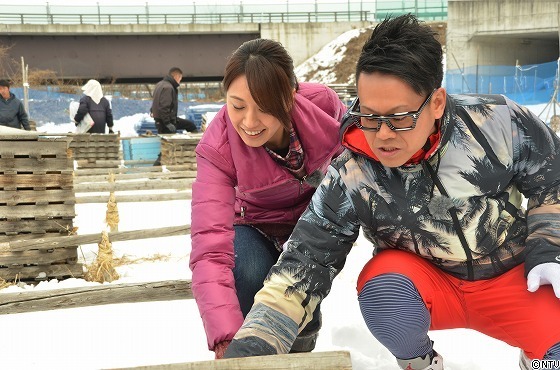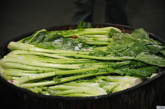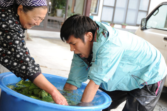 野沢の山から湧き出る冷たい水に耐え漬けこみ、ようやく食べられると思っていた2人。