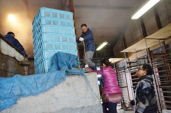 筒状に成形したものを、隣にある蔵へ持っていきました。