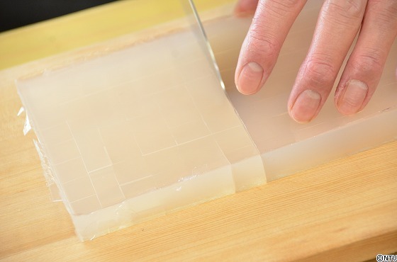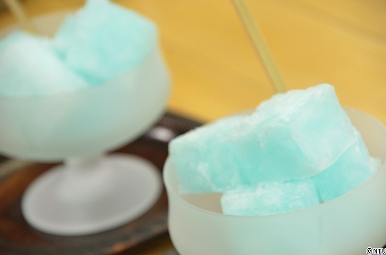 溶けたところに砂糖を入れて混ぜ固めると、ようやくよく見る寒天の姿に!