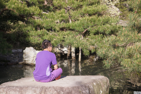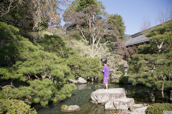 なんと、名人は庭にいる鯉に餌をあげていました。