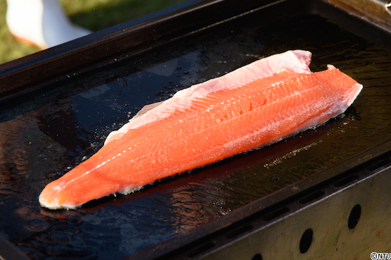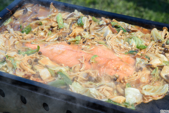 乾杯料理は、信州サーモンを使ってちゃんちゃん焼き!